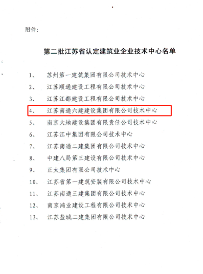 南通六建技術(shù)中心于2009年12月成功認定為江蘇省建筑業(yè)企業(yè)技術(shù)中心。作為集團技術(shù)開發(fā)、技術(shù)創(chuàng)新的統(tǒng)籌部門,立足于以工程為載體,以服務(wù)工程為首要職責,進行專項技術(shù)研究、技術(shù)攻關(guān)和重大項目的施工技術(shù)策劃,為集團發(fā)展提供堅實的技術(shù)支持和技術(shù)儲備。